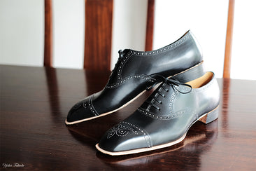 再度ご来店いただき、仮縫い靴で履き心地確認します。トウシェイプ、全体のバランス、デザインや仕様を確認します。