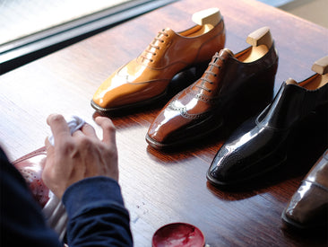 靴を受け取ってから、すぐにご着用頂けるようにじっくりと磨きます。ご希望に合わせてクリームだけの磨き、またパティーヌを施す事も可能です。
