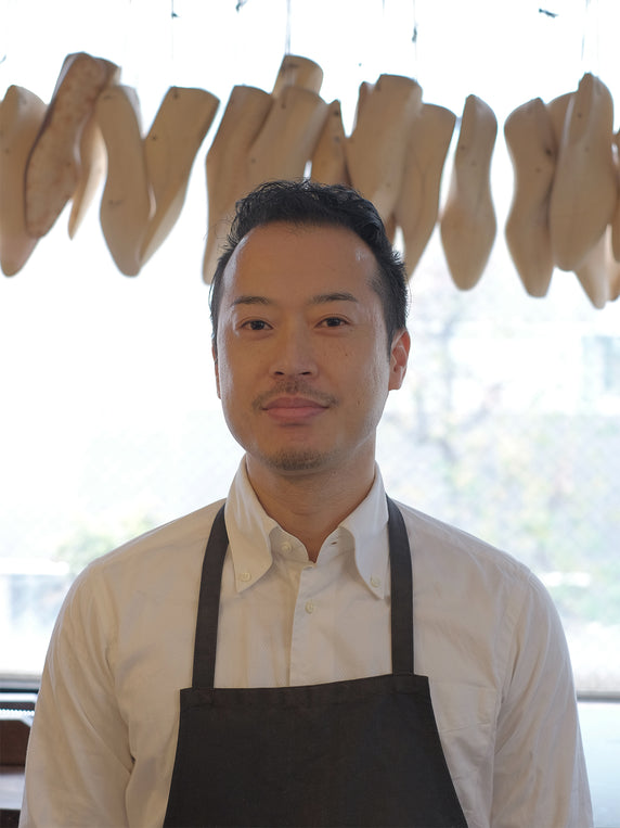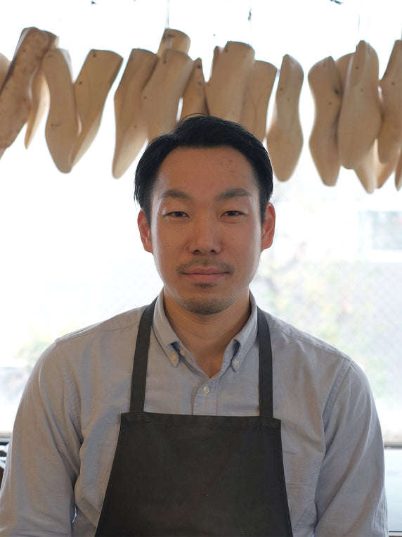 Yohei oversees all of the shoemaking, creative, and business aspects of Yohei Fukuda. As the lastmaker, he measures each client’s foot and makes the last around which the shoe is built, working with his team to make each pair of shoes to an uncompromising standard.